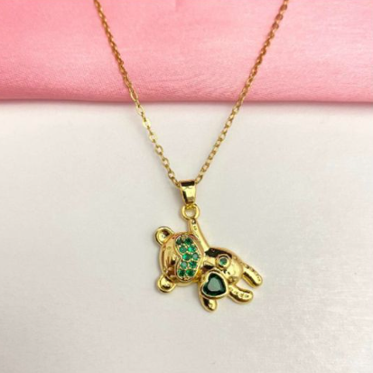 Introducing the COOPER NECKLACE! With a charming teddy pendant adorned with green stones and a playful green heart stone, this gold dainty chain necklace is perfect for adding a touch of cuteness to any outfit. Wear it everyday and embrace the fun, summer-y vibes. It goes with everything!