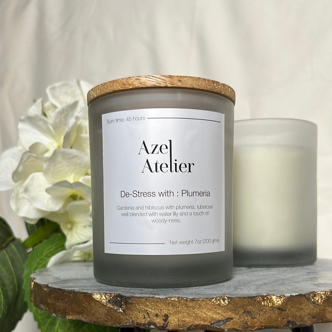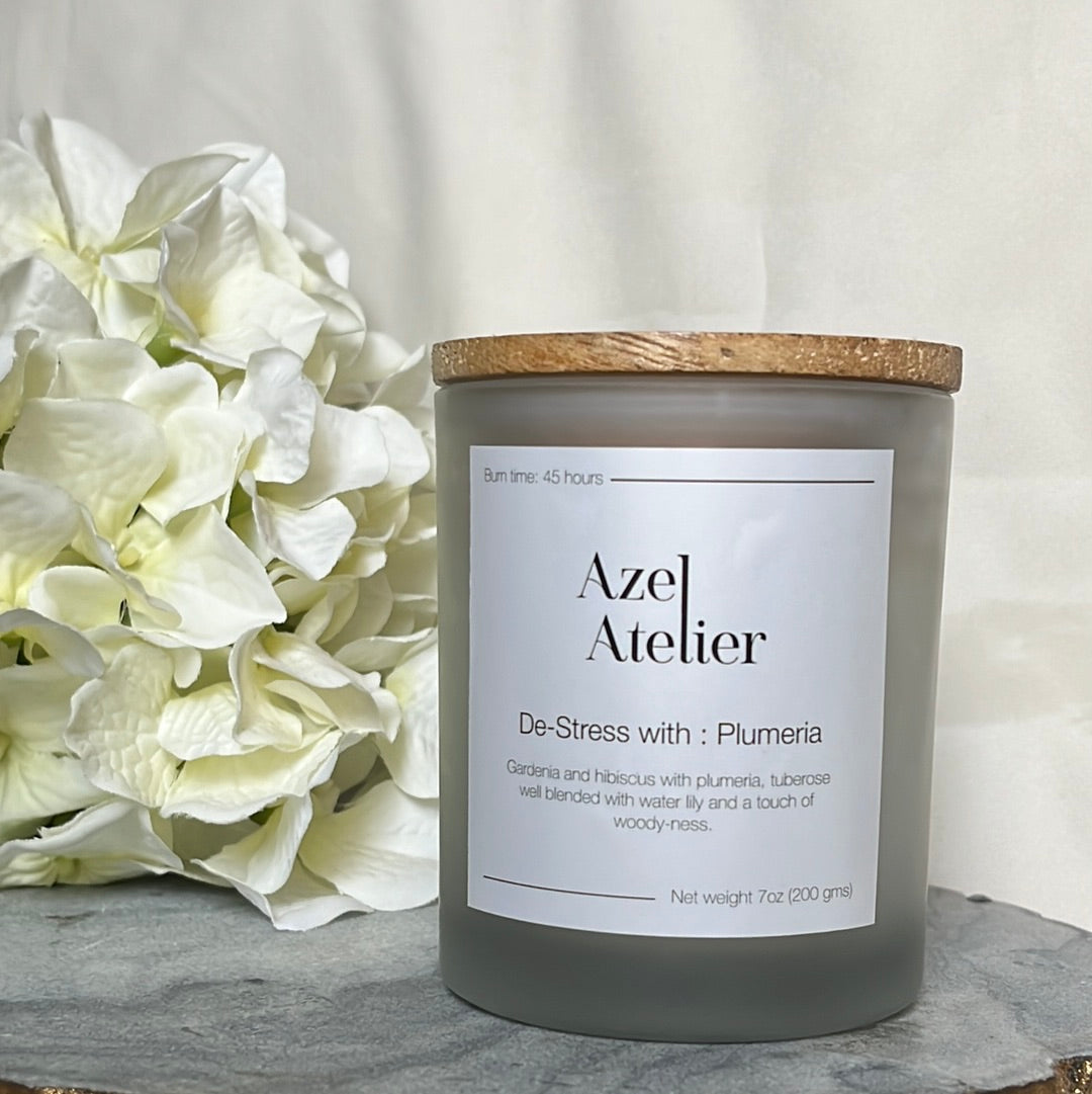 Relax in your me time with De-Stress With : Plumeria, our new range of scented soy wax candles.