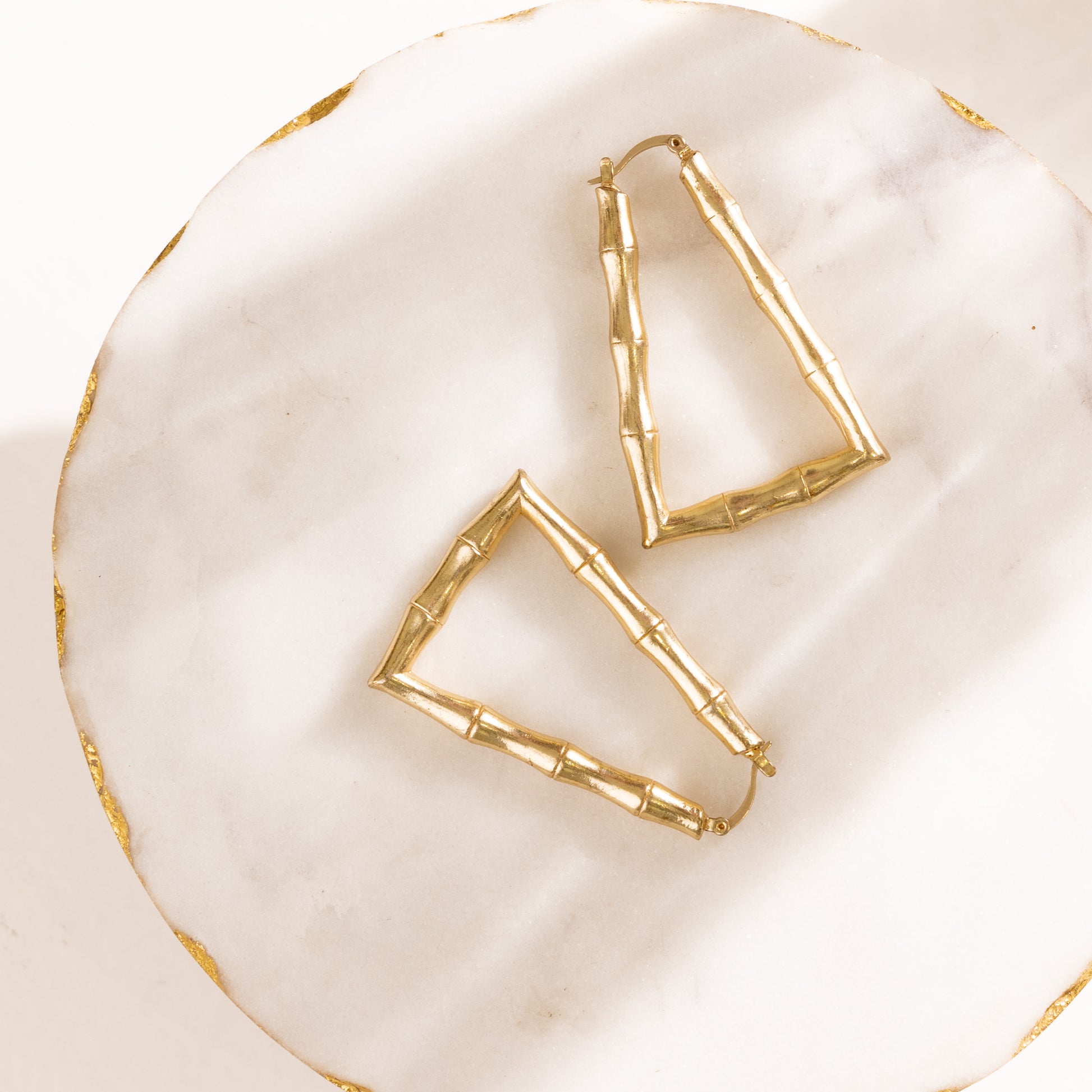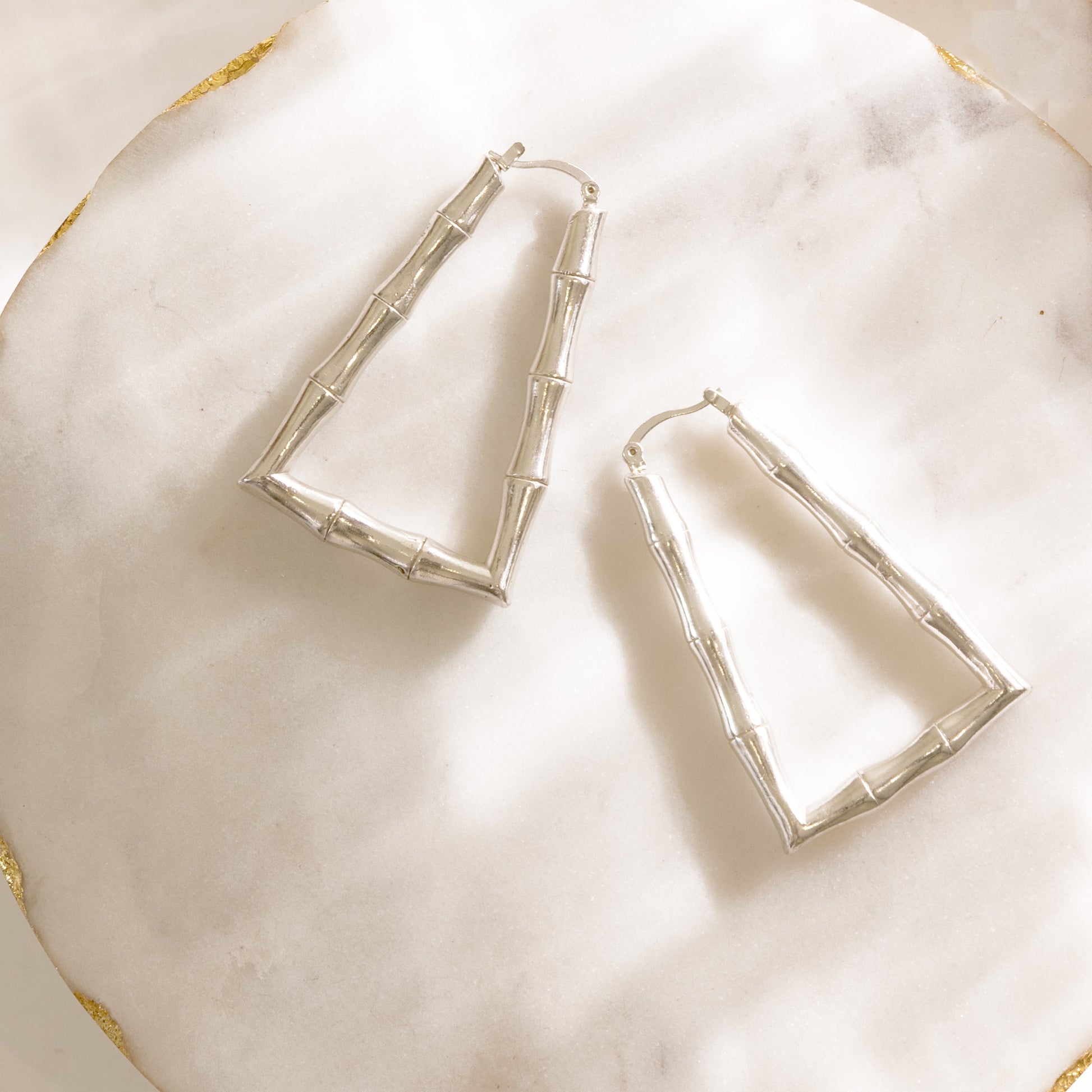 These triangular Hellen Hoops are pure, accessible sophistication and their sleek design allows your light to shine through!
